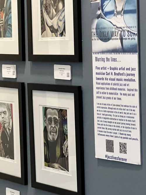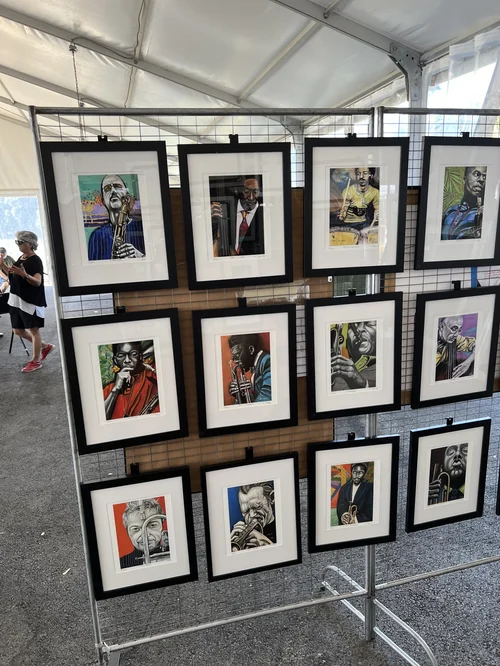 2023 60th Nor Cal Juried Art Show Second place finalist Mixed Mediums works on paper Wynton Marsalis (BLOW)